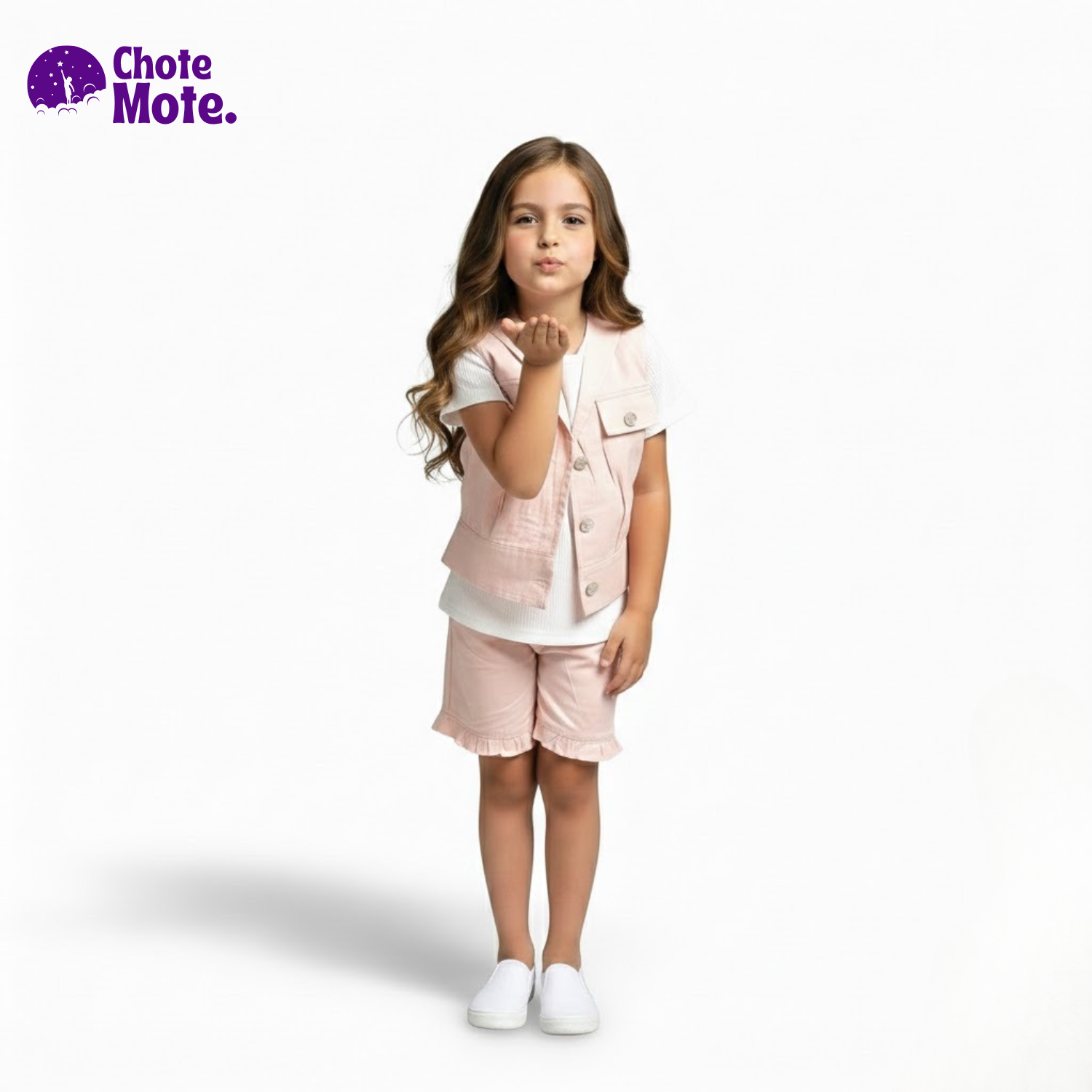 Article 51060 : Girls' Premium 3-Piece Summer Suit in Sky Blue & Baby Pink (Waistcoat, Inner & Shorts)